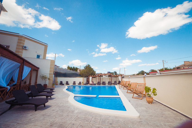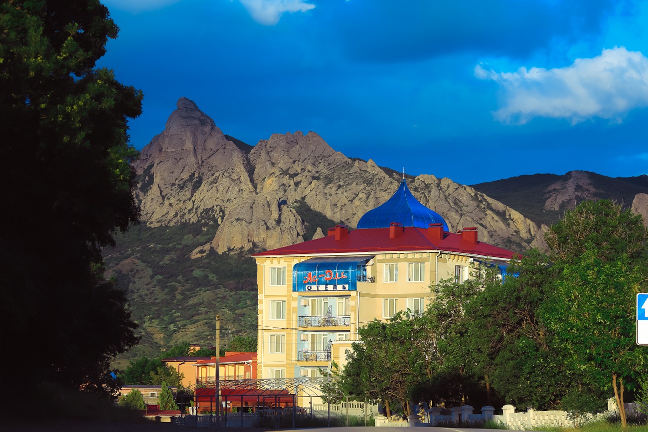 Гостиница находится в необычайно красивом уголке, в стране коньяков – поселке Коктебель у подножия потухшего вулкана и красивейшего в Крыму заповедника Кара-Даг. Отель поражает своим совершенством и красотой. Снаружи и внутри гостиница спроектирована в восточном стиле, красивый восточный орнамент украшает стены здания, а светлые и уютные номера располагают к приятному отдыху.